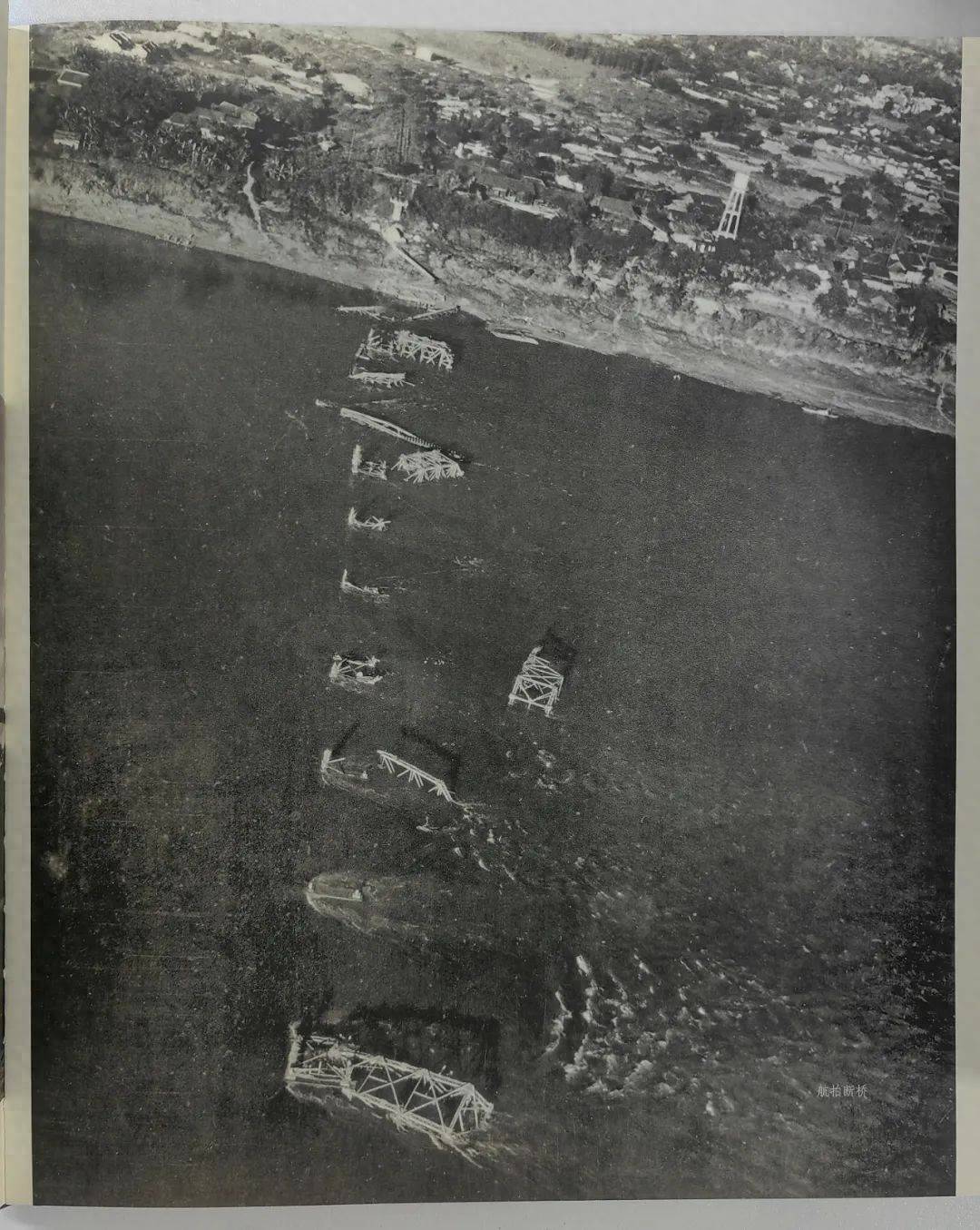 柳州旧影展示,1944年柳江铁桥被炸毁。记者廖艳明 翻拍