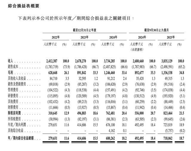 2025年前三季度,公司实现营收为38.35亿元,同比增长43.07%;期内利润为7.24亿元,同比增长46.97%。