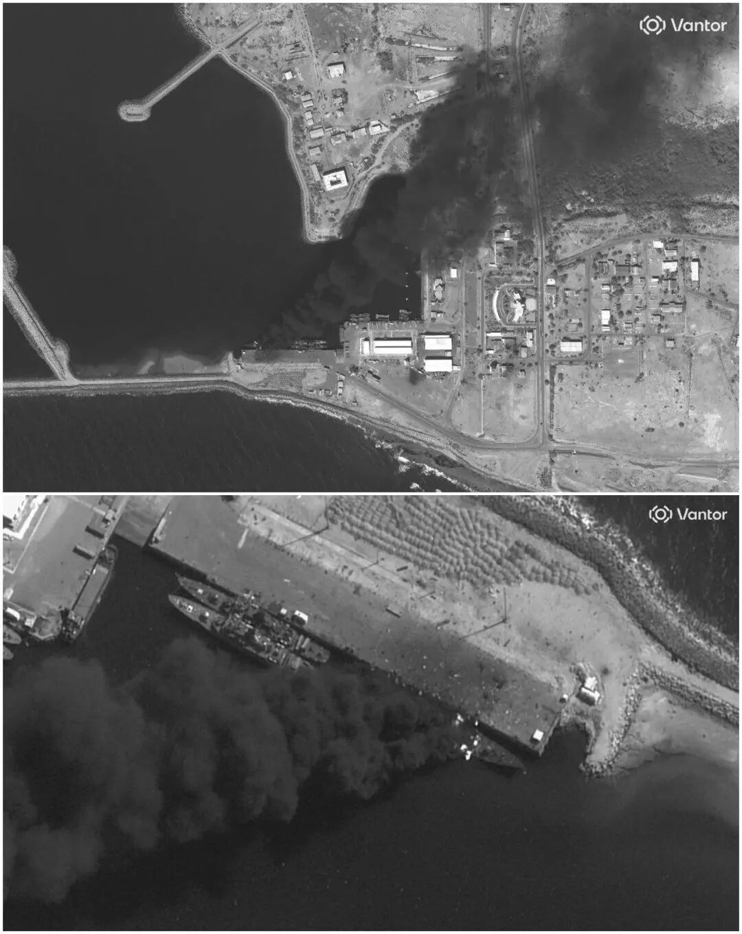 ◆卫星图像显示,伊朗“贾马兰”号轻型护卫舰被击沉。