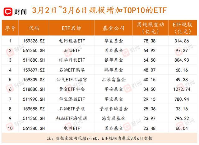 上周,华夏基金的电网设备ETF规模增长78.38亿元,是当周规模增长最多的ETF,截至3月6日,其规模达到314.86亿元。在资金布局与净值上涨的双重推动下,该产品连续两周位居规模增长首位。