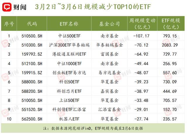相比之下,宽基ETF规模继续下滑。此外,受市场调整等因素影响,科创芯片ETF、机器人ETF等主题产品的规模缩减幅度居前。